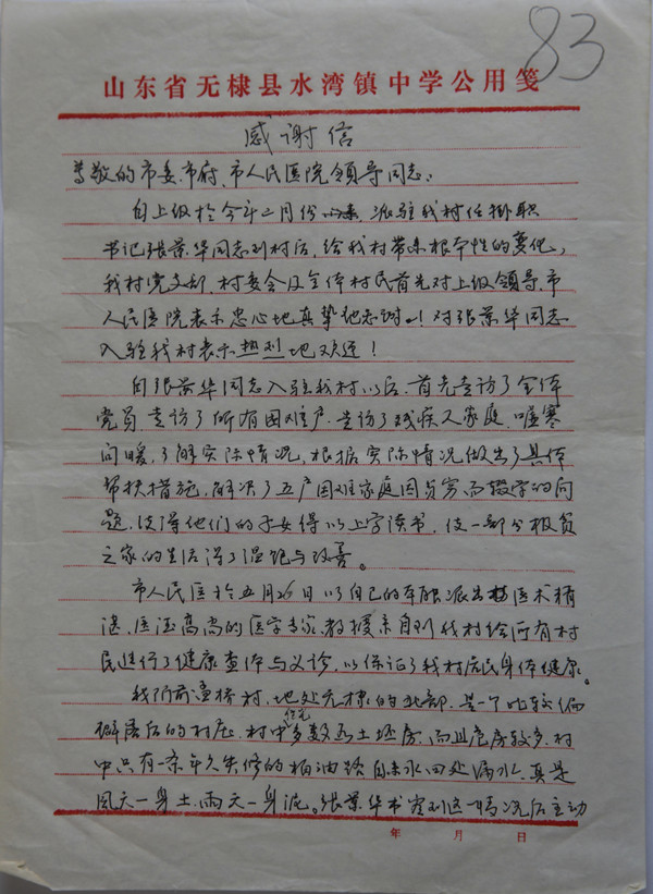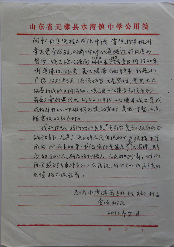 给滨州市人民医院的感谢信