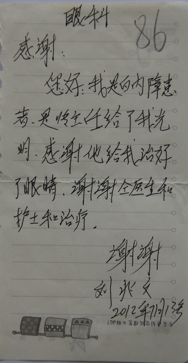 给眼科的感谢信