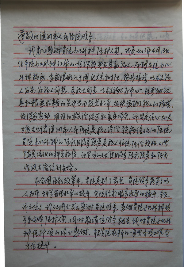 给小儿外科的感谢信