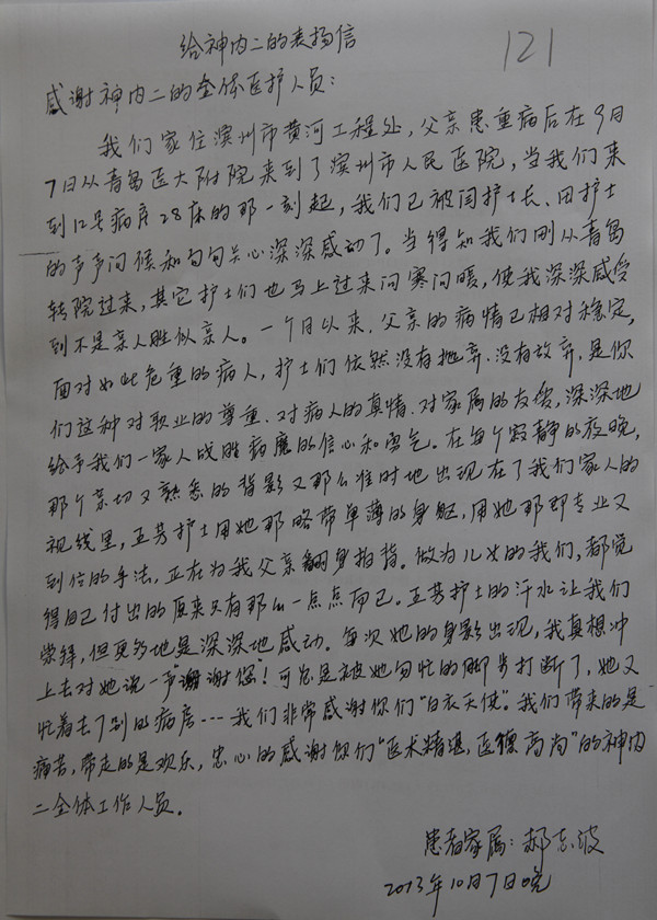 给神经内二科的感谢信