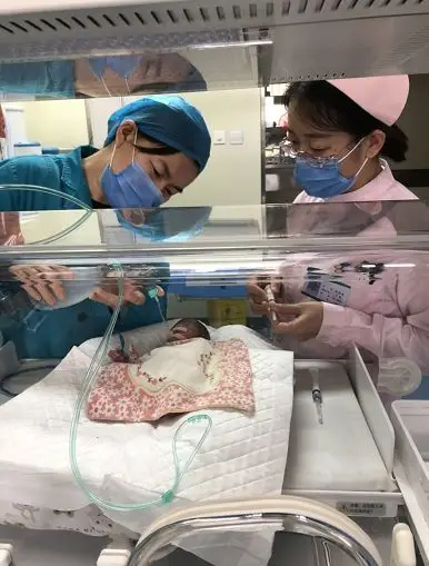 双胞胎老大,出生体重1.3kg,生后哭声弱,心率慢,立即给予新生儿复苏,孩子好转后急转入我科