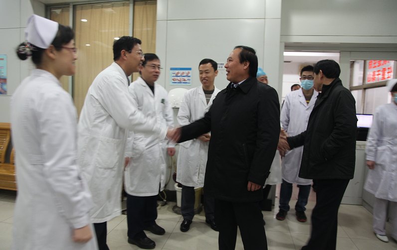 2月6日,市政协主席孙承志一行到我院慰问坚守岗位的干部职工,向他们拜年,祝福大家新春快乐。市委常委、市总工会主席魏克田、政协秘书长傅鸿波一同走访慰问。市卫生局党委书记、局长高树先,我院党委书记、院长王树德陪同。 孙承志主席与大家握手交谈,并详细询问春节期间职工的生活、工作情况,向坚守在临床一线的医务人员表示衷心的感谢。叮嘱医务人员在节日期间一定要确保医疗安全,强化岗位责任制,严格治疗操作规程,时刻把病人的生命安全放在首位。