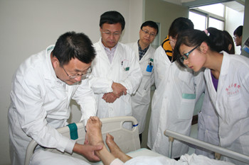 上午,许教授床旁诊治了两位疑难危重糖尿病足病患者,对一例足病变患者进行了详细检查,为两位患者今后的规范治疗指明了方向,并结合自己在糖尿病病足病的科研及临床诊治经验对内分泌专业诊治工作提出了宝贵意见和建议。许教授还承诺今后会在人才培养、科研、教学、内分泌疑难病人诊疗等方面与我院内分泌科建立长期合作,并开通网上远程会诊,这将对提高我院内分泌专业水平起到非常重要的作用。