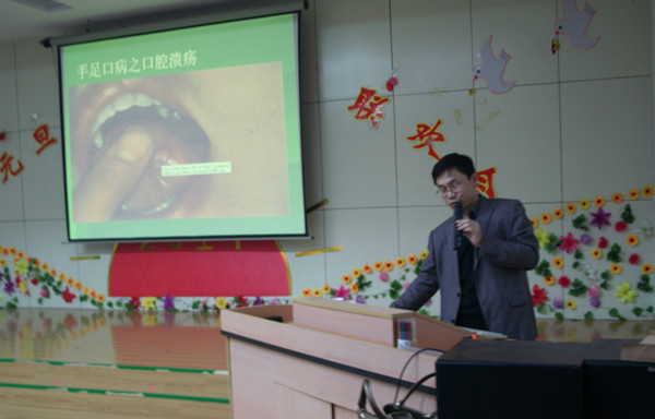 春夏是手足口病高发季节,为进一步做好手足口病的预防和宣传工作,有效预防手足口病,3月19日晚,我院医务人员来到六小幼儿园给孩子家长和幼儿园老师们上了一堂精彩的保健课。