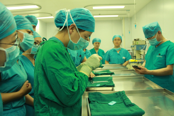 为迎接三甲医院评审,提高手术室护士操作技能水平,营造“比、学、赶、帮、超”的学习氛围,2014年5月20日晚,手术室举行了一场别开生面的操作技能竞赛。本次竞赛由手术室护士长、经验丰富的护士及教学老师担任评委,护理部苏全志主任、杨丕荣副主任、麻醉科王浩主任亲临现场指导,科室全体护理人员观摩了竞赛。