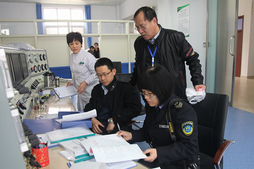 12月11日,市医疗质量和依法执业检查组由市卫生局孙景华副局长带队,林兴凤、王若义、刘相东、郝子成、杨冬等一行14人,对我院医疗人员执业资质、母婴保健、临床用血、医疗广告以及消毒隔离、医疗废物、污水处理、院感、传染病、门诊、医技科室管理、毒麻药管理、放射诊疗等方面进行检查。检查组查看材料及相关证件,深入放射科、药房、高压氧科、急诊科等一线科室进行实地检查。