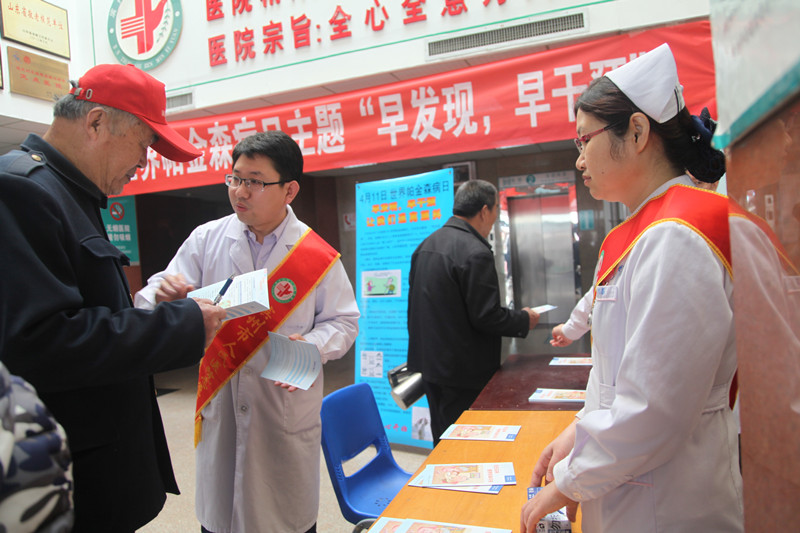 据最新统计,目前我国帕金森病总人数已超过200万,65岁以上人群患病率为1.7%,并随年龄增长而升高,给家庭和社会都带来了沉重的负担。为提高广大群众对该病的了解,普及帕金森病的相关诊疗知识,指导和引导人们树立正规科学的防治理念,从而早期发现、及时治疗以减轻患者病痛,4月11日上午,我院神经内科的医护人员在医院门诊大厅举办了帕金森病健康教育宣传活动,为前来就诊的群众讲解帕金森疾病防治常识,为帕金森病患者或疑似帕金森病患者提供免费诊疗、解答咨询及日常生活的护理指导,并免费发放了帕金森病相关健康教育资料。