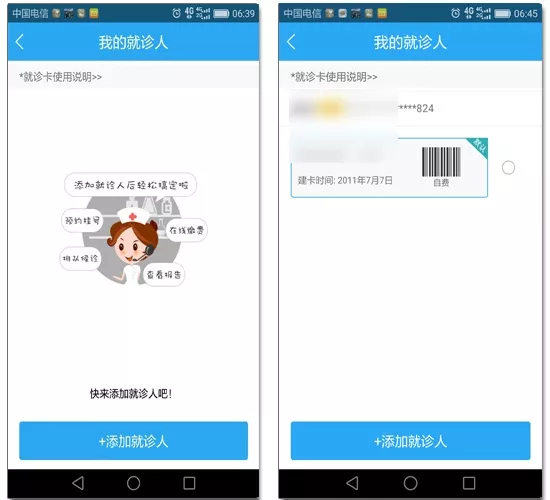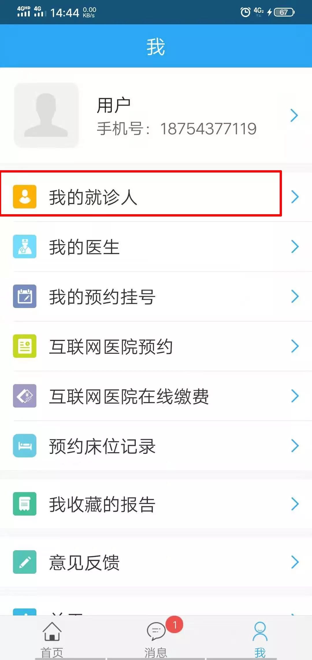 点击右下角“我”,选择“我的就诊人”,添加就诊人