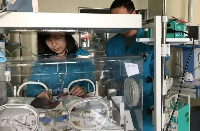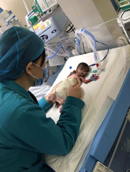 双胞胎老大,出生体重1.3kg,生后哭声弱,心率慢,立即给予新生儿复苏,孩子好转后急转入我科