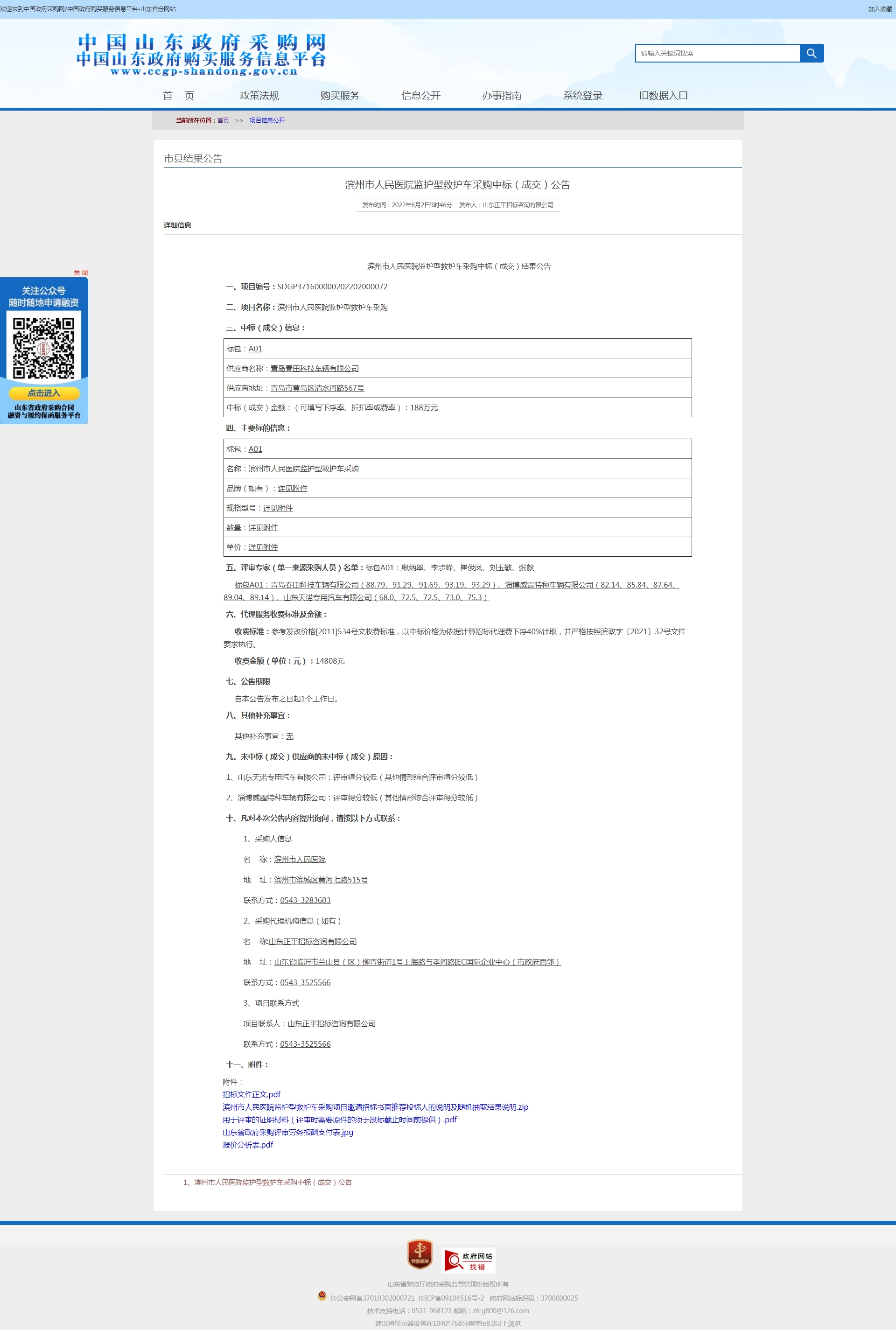 滨州市人民医院2022年6月(至)2022年7月政府采购意向